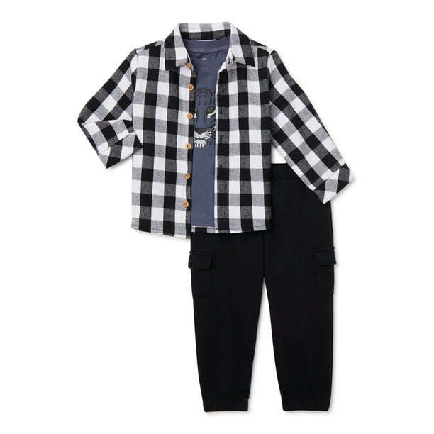 Wonder Nation Baby Boys Flannel Shirt Outfit Set 3 Piece Sizes 0m 24m Walmart Com